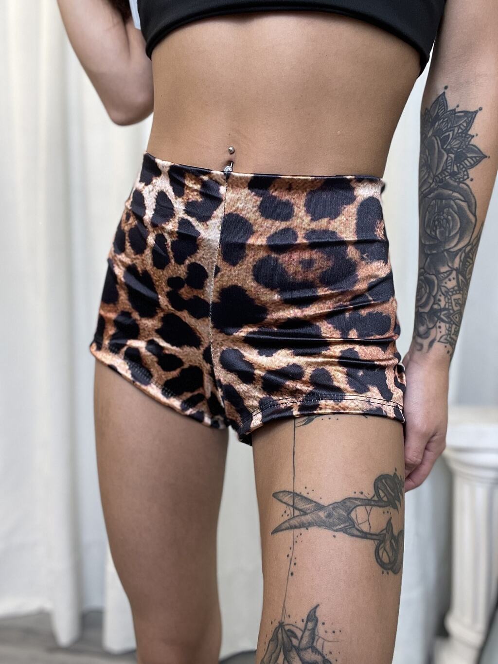Confeccionado en satén brillante y sedoso, este mini short acaricia tu piel con una sensación de lujo inigualable. Su vibrante estampado animal print añade un toque de ferocidad y sofisticación, convirtiéndote en el centro de todas las miradas. El diseño de tiro bajo aporta un aire relajado y sensual, perfecto para un estilo moderno y desenfadado. El cierre lateral asegura un ajuste cómodo y discreto, manteniendo la fluidez y la estética impecable del short. Su corte mini es ideal para realzar tus piernas con confianza y estilo.